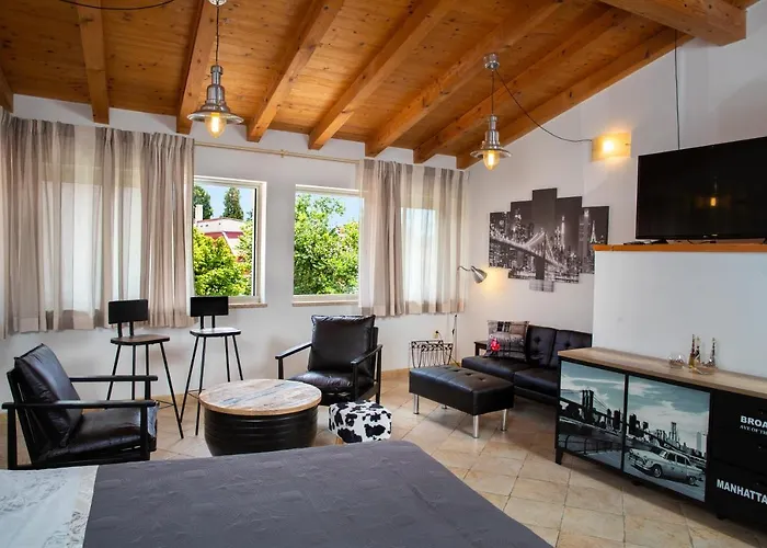 Mulini plaža udaljena je samo 1,3 km, dok je ulica Fontera udaljena 200 metara od smještaja. Carera ulica je lako dostupna pješice do apartmana, a 40 km udaljen je od zračne luke Pula. Kantinon goste mazi s hrvatskim jelima i nalazi se na 200 metara od ovog smještaja. Dolce Studio Apartmani su udaljeni nekoliko koraka od starog grada.